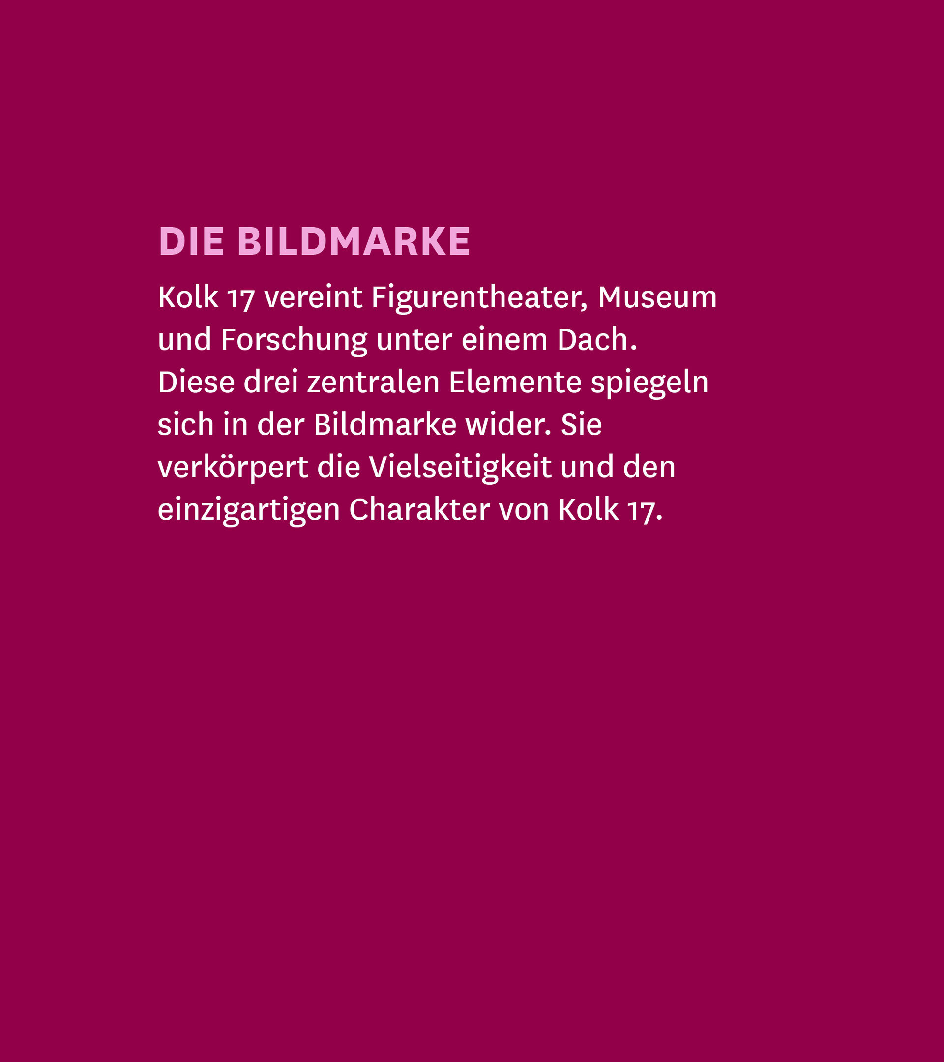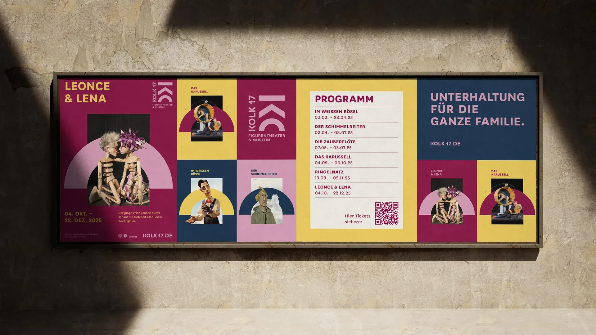 Das Kolk 17 Figurentheater & Museum widmet sich der Kunstform in all ihren Facetten und vereint historische Sammlung und modernes Figurentheater. Unser Redesign setzt die künstlerische, gemeinschaftliche und lebendige Institution in eine einprägsame Identität um, die Tradition und Zukunft des Figurentheaters verbindet.